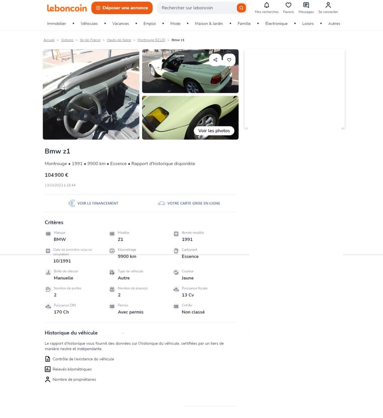 La première chose a demandé un WW provisoire pour l'assurer, rouler pour établir l'état général de la voiture notamment quand elle a plus de 50 ans.